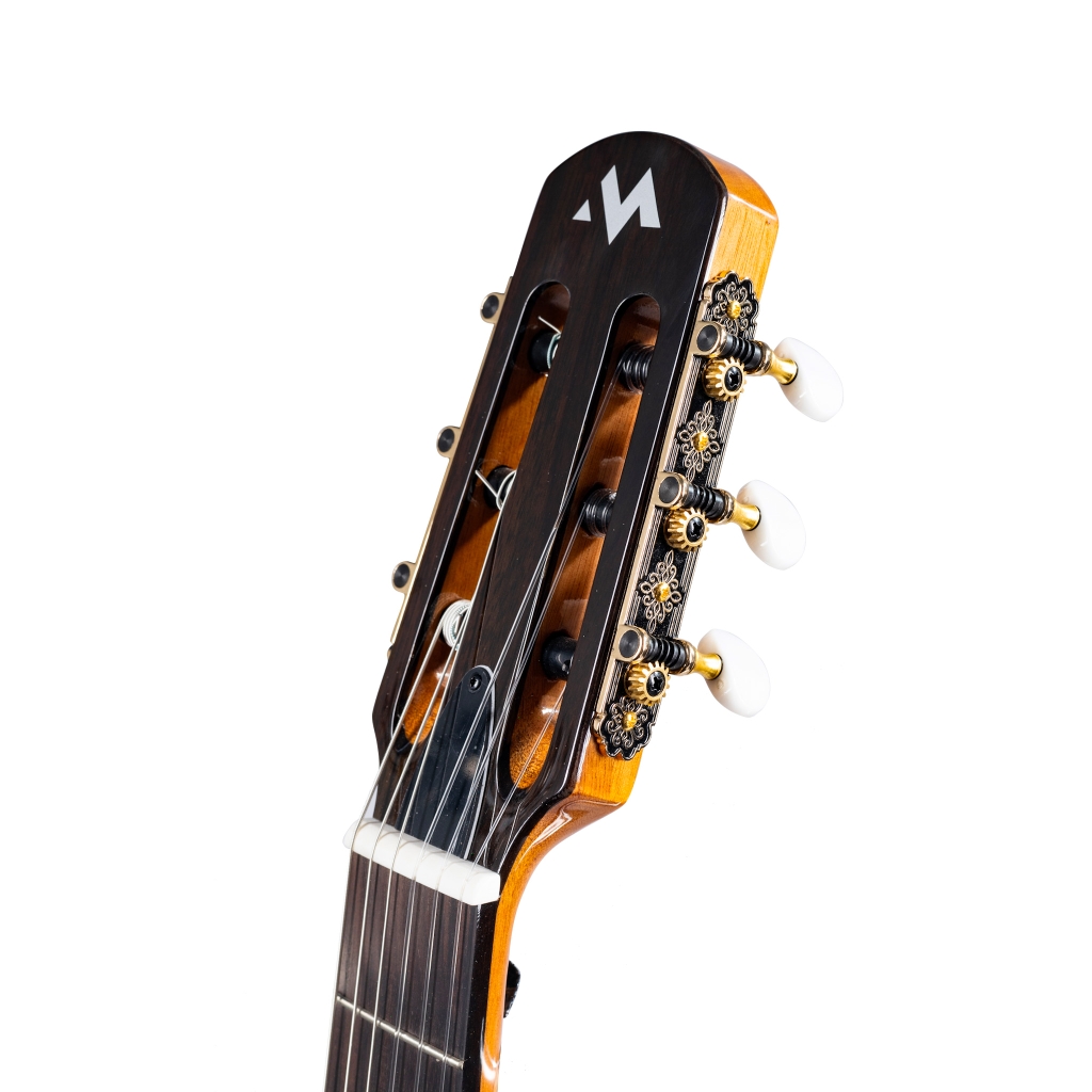 Murcia Stage Ziricote Limited is the stage acoustic-electric concept. Pairing a Ziricote Veneer top and Mahogany body, the neck with a comfortable 48mm nut width which is slightly thinner than a traditional nylon string guitar and provides a playing experience closer to a steel string guitar. At the heart of the Murcia Stage is the custom Murcia multiac dual source system 2 body sensors undersaddle bridge pickup, which is equipped with easy-to-access Volume, EQ, and Body Blend knobs allowing players to dial in their preferred acoustic tone on stage or in the studio.