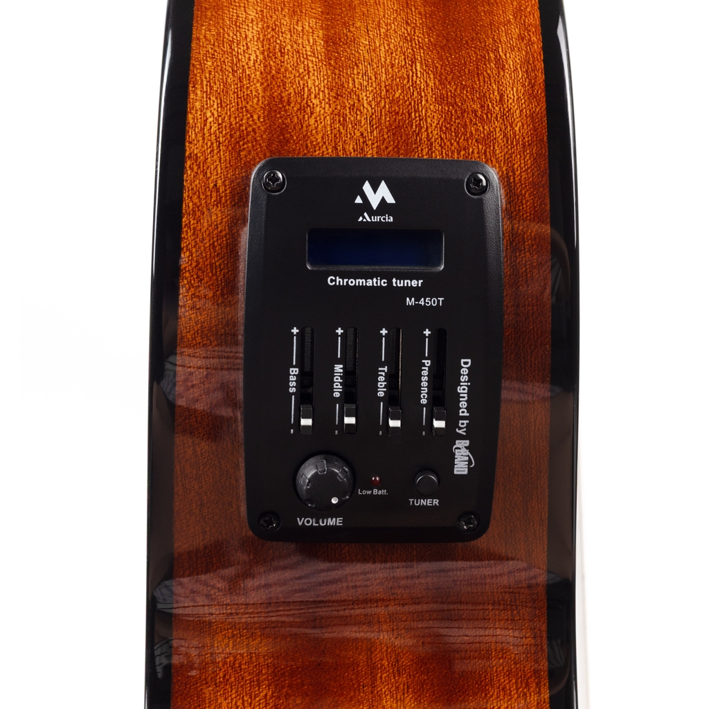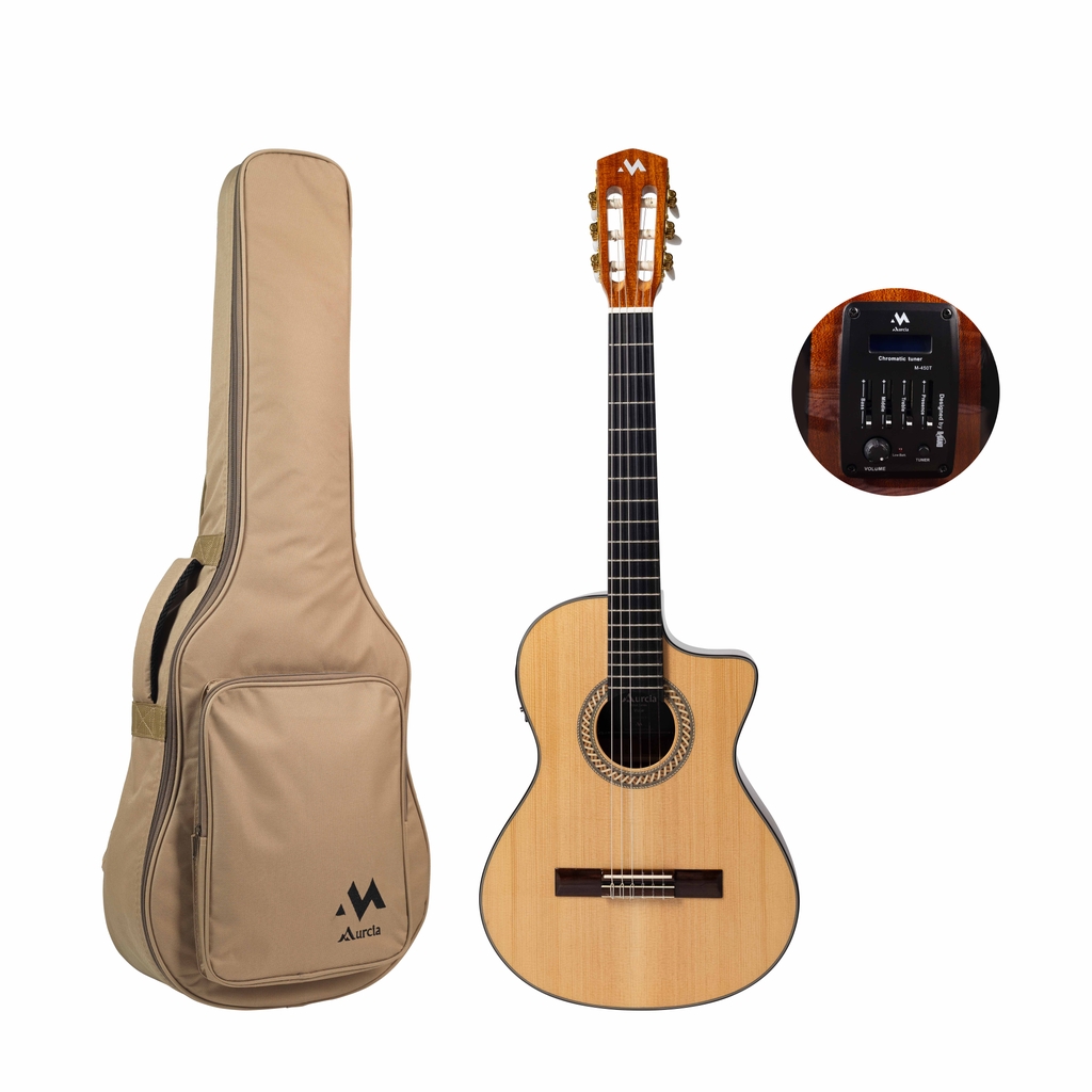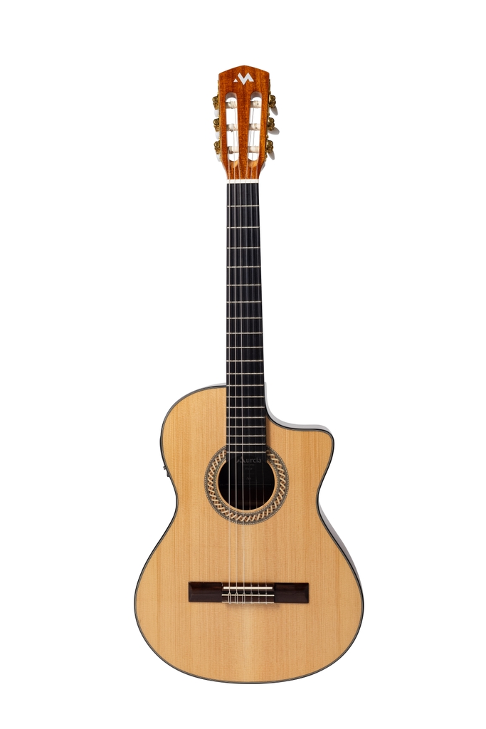 The fingerboard is made from Richlite, ensuring long-term stability, durability, and strength for the neck. Additionally, the guitar is equipped with the B-Band M-450T EQ system, custom-made for Murcia, providing clean, powerful amplified sound when playing through an audio system.